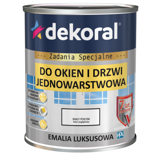 Emalia do drzwi i okien jednowarstwowa Emalia przeznaczona jest do malowania drewnianych okien i drzwi, a także innych przedmiotów z drewna, materiałów drewnopochodnych, lamperii oraz elementów ...